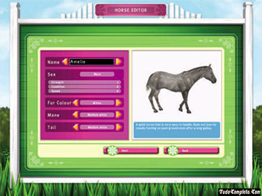 Comece por criar o seu próprio cavalo – pode escolher a cor, a cauda, o estilo e raça. Terá que cuidar do cavalo, certificando-se adequadamente alimentados e que a sua estabilidade é agradável e limpa.